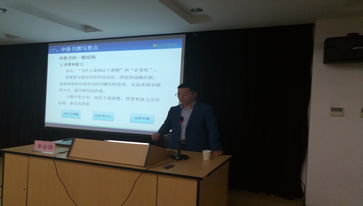 李金国就科技计划项目申报书撰写要点展开了详细的讲解,结合自身申报省基金、省公益的成功经验与科研管理经验,重点介绍如何体现创新点、预期目标、实施方案以及技术路线等方面的内容。