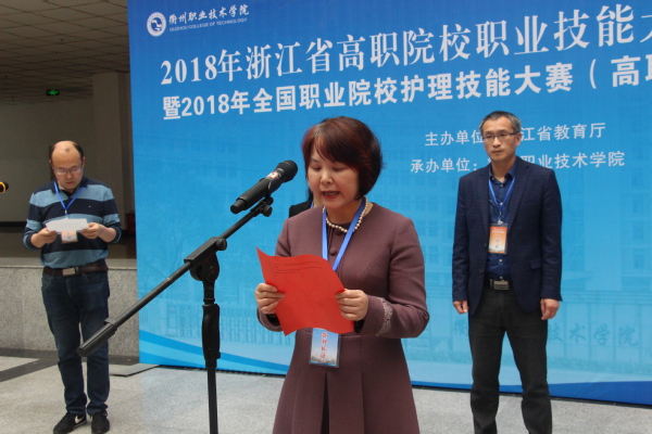 4月21日至22日,2018年浙江省高职院校职业技能大赛护理技能竞赛暨2018年全国职业院校护理技能大赛(高职组)浙江赛区选拔赛在我校隆重举行。大赛裁判长、浙江中医药大学护理学院院长何桂娟教授,浙江省护理学会杨丹主任,江南网页版党委委员、副校长何百通,医学院院长姚水洪出席开赛式。