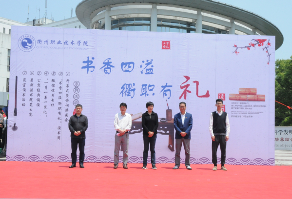 读书可以修德,识礼可以养气。在市委市政府提出创建“南孔圣地 衢州有礼”城市品牌的大背景下,作为地方高校,为传播和创新知识,为广大学子提供读书学习的场所,为营造清新高雅的校园文化,引导广大学子争做知礼明礼的时代青年,校党委提出把“有礼”和中华优秀传统文化相结合,与读书相结合,打造“花开四季 书香四溢”的衢职校园风尚。4月25日,我校“书香四溢 衢职有礼”系列活动开幕式暨诗词游园会活动在思齐广场举行。党委书记崔戴飞,党委副书记陈青,校党委委员、宣传部部长孔庆红等领导参加了本次开幕式。