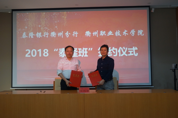 2017年11月1日,我校与浙江泰隆商业银行衢州分行就成立第一期“泰隆班”达成合作协议并签约;2018年4月,经济管理学院第三党支部与泰隆银行柯城支行党支部进行支部共建,就支部建设、党员志愿服务、学生社会实践等方面达成合作意向。经济管理学院将积极总结第一期“泰隆班”的教育教学经验,做好订单班培养模式的探索,进一步深化班级管理、实训管理等管理机制,更加贴近实际,完善管理模式和管理条例,真正做到以企业需求为动力,从而实现优势互补、利益共享,以进一步增进学校发展的后劲和活力。 (经济管理学院 赵慧慧)