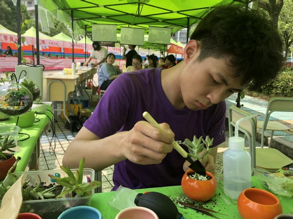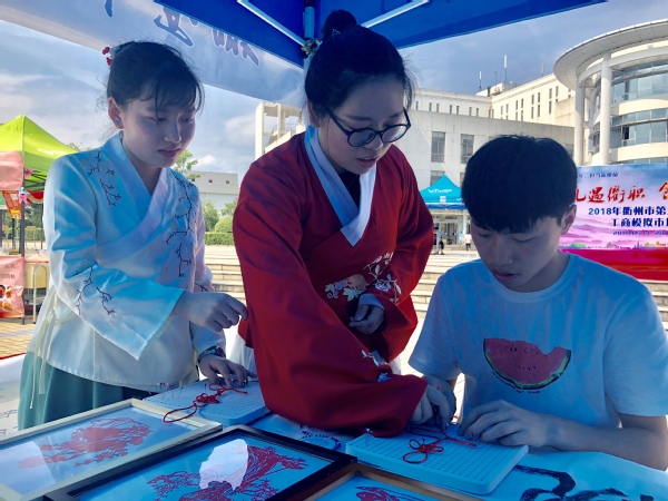 汉服社、兰亭书协、手工协会、武术协会等学生社团展现了中华传统文化社团的刚柔与雅美。衢州市第六届“礼遇衢职 创赢未来”大学生工商模拟市场大赛正在思齐广场上进行,在衢州市委市政府创建“南孔圣地 衢州有礼”城市品牌的大背景下,开设“有礼一条街”,将衢州“礼”文化的精髓融入到校园文化,让广大青年学生在参赛的同时能成为“有礼衢职人”,真正做到文化自信。星巴克、泰隆银行等校企合作企业的优秀毕业生代表向大家展示了我校校企合作成果,经济管理学院“杜拉拉训练营”的同学向大家汇报职场文化、白领文化的训练成果,花为你开、南孔爷爷等项目都进入到大学生工商模拟市场大赛的舞台。很多市民朋友带着孩子们“赶集”来了,李梦然小朋友抓完鱼之后,在榨汁店买了一杯西瓜汁和她的小伙伴分享。工模大赛通过真实的市场检验,进一步强化了学生们的创业水平与营销能力。