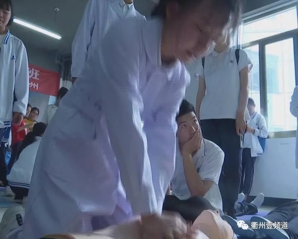 在衢职院医学院实训基地里,市民周美玲正在职院专业老师的指导下学习心肺复苏术,虽然是第一次实践操作,但是姿势正确动作规范。市民周美玲告诉记者,现在身边的老人比较多,在防灾减灾日这一天学习心肺复苏这一抢救技能,很有意义。