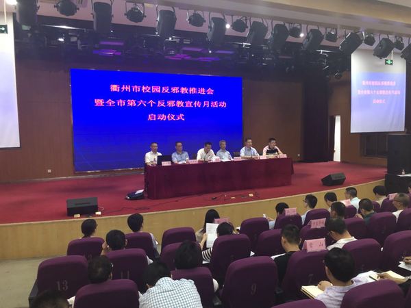 近日,由市委防范处理邪教办主办的市校园反邪教推进会暨全市第六个反邪教宣传月活动启动仪式在我校图书馆一号报告厅隆重举行,来自全市教育系统、衢州学院、江南网页版的300名领导、老师、学生共聚一堂。