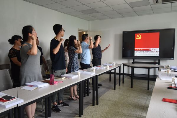 活动在庄严的宣誓声中开始,机关一支部全体党员佩戴党徽,在党旗前重温入党誓词,进一步激发了全体党员的党性意识,牢记使命担当。