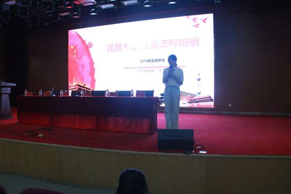 为深入贯彻落实习近平新时代中国特色社会主义思想,牢牢把握社会主义办学方向,努力培养社会主义合格的建设者和接班人,使广大新生了解党员发展入党流程,吸纳更多优秀学子早日加入党组织,9月10日,经济管理学院党总支为2018级新生开设大学第一课,为其讲解党员发展入党流程,鼓励大一新生,组织员、第一支部书记蒋雪芬主讲,2018级所有新生参加。