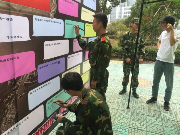 随着网络时代的到来,标签党大行其道,给90、00后贴上各类标签,如宅男宅女、二次元、啃老族、颜控等。为鼓励学生冲破标签党束缚,跳出惯性思维,提高学生自信心,帮助90、00学生群体认识自我、勇于表达正能量的自我、悦纳自我。近日,学生处组织开展“90、00自画像”活动,大学生自我发展中心学生干事通过一对一交谈,引导同学们发掘内心自我,鼓励其写出来。三百余名学生在空白的喷绘上留下了对自我、对人际关系、对未来的表达。