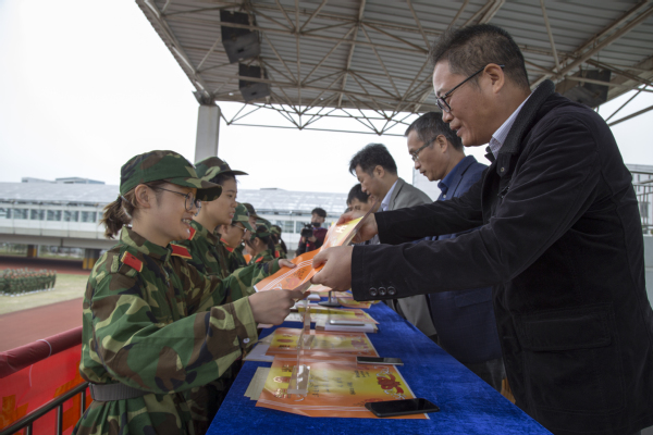 10月19日上午9时,我校2018级新生军训总结表彰大会在田径场隆重举行,校领导江爱民、陈青、黄云龙、章加春、何百通、徐浪静、孔庆红出席本次表彰大会,大会由副校长傅元勋主持。