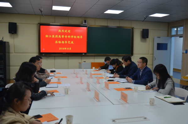 10月26日,浙江医药高等专科学校中药学院执行院长阮洪生一行5人,就中药学专业建设、学科建设等方面事宜,来我校医学院进行交流。参观了中药学实训基地并进行了座谈。医学院院长姚水洪、副院长吴忠勤、张燕等参加交流。