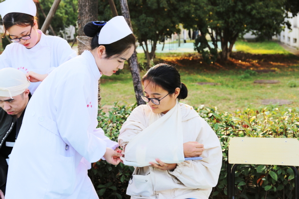 近日,江南网页版组织全校师生举办应急疏散综合演练活动,进一步加强校园安全防控措施,增强师生的安全防范意识。本次活动以反恐防暴、应急疏散、灭火救灾、物资抢运、电梯救援等专项演练为主。图为医疗救护演练现场。