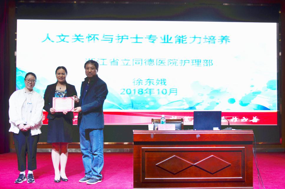 10月31日下午1点半,图书馆1号报告厅座无虚席。浙江省立同德医院护理部主任、硕士生导师徐东娥主任护师受邀为医学院18级护理专业学生作《人文关怀与护士专业能力培养》的专题讲座。