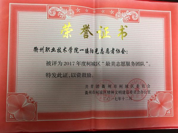 据悉,因为三年如一日的陪伴和关爱,该社团在2017年12月被评为柯城区“最美志愿者服务团队”。
