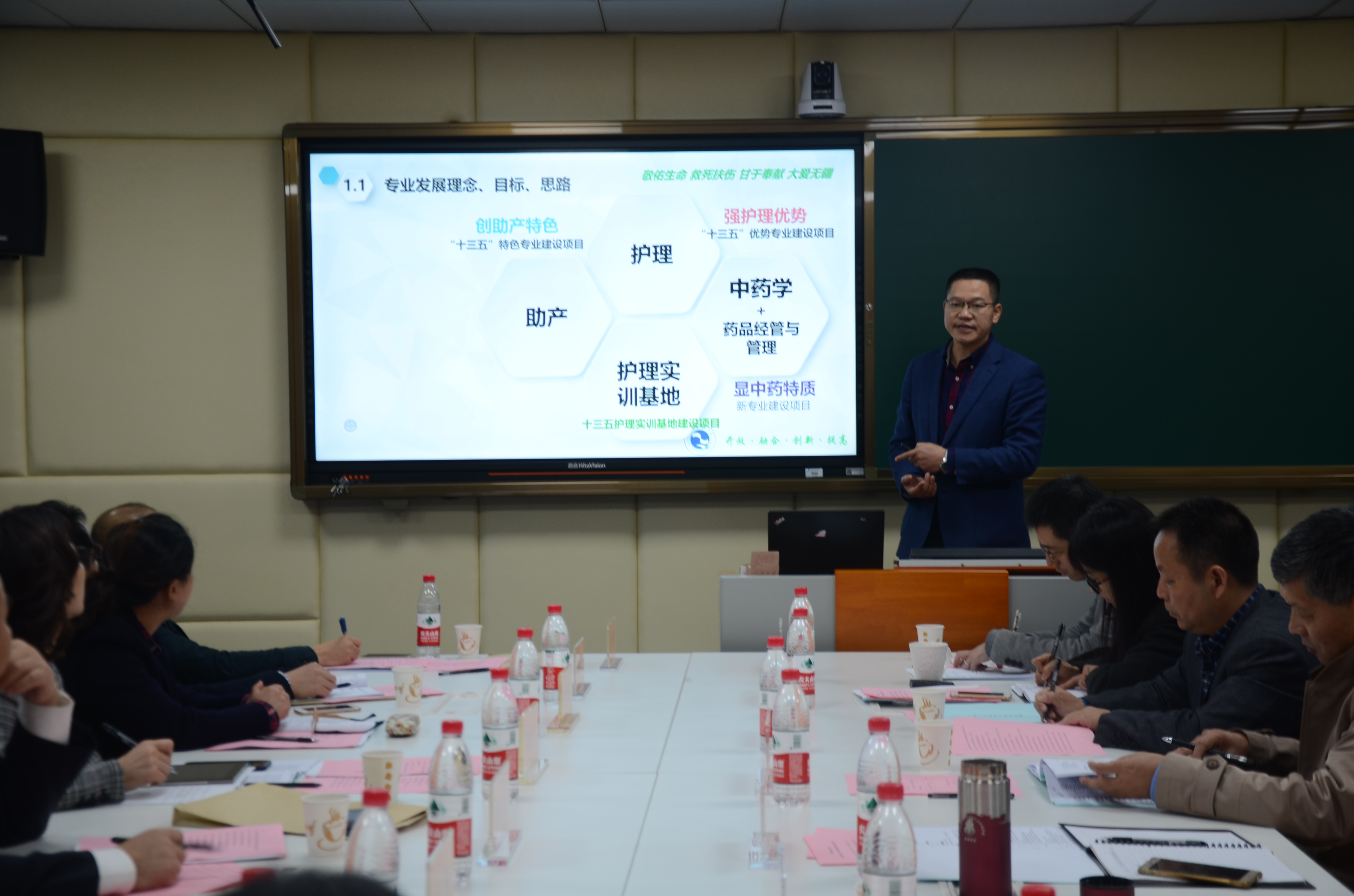 为加快我校医药相关专业建设步伐,完善医教协同、产教融合的办学模式,提高人才培养质量,更好地服务衢州医药健康产业发展,经过前期准备,11月15日,医学院于实训208智慧教室,召开江南网页版医药卫生大类专业建设指导委员会会议。来自衢州市卫计委、市场监管局、市人民医院、市食品药品检验研究院等医药健康机关企事业单位和学校的12名专业建设指导委员会专家代表,我校教务处领导,以及医学院领导班子及各专业主任参加了本次会议。