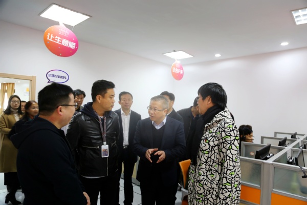 随后,徐文光又来到我校的阿里巴巴客服实训基地进行了参观调研,详细了解了我校与阿里巴巴客服实训基地的合作情况,并希望我校依托客服基地进一步加强与阿里巴巴的合作关系,紧紧围绕市委市政府“1433”战略布局,精准服务企业,进一步提高服务地方经济的能力。