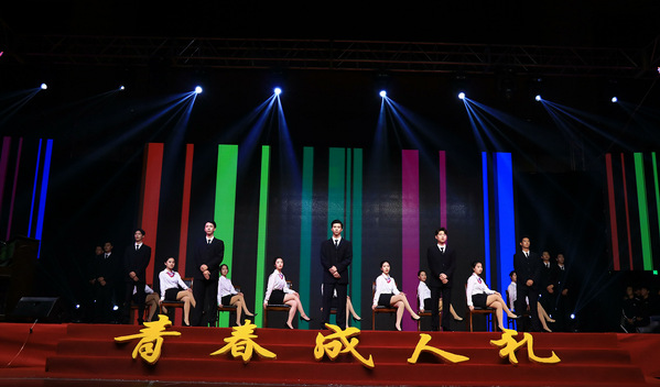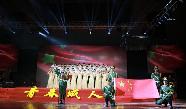 “2018青春成人礼”以“我和我的祖国”为主题,分为“爱国”、“励志”、“求真”、“力行”四个篇章。整场典礼以老师、学生的爱国励志情怀为主线,融合了舞蹈、歌曲、舞台剧、走秀、演讲等形式多样、精彩纷呈的节目,以寓教于乐的形式启迪2018级新生们热爱祖国、感恩祖国、报效祖国。