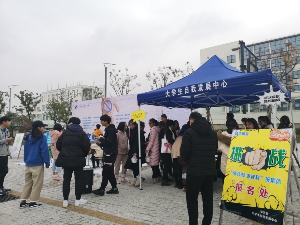 12月26日中午,食堂门口,一组主题为“作弊”的静态行为艺术展示在食堂门口悄然开展,几名“作弊”的学生静态演示了《学生手册》中所涉及的考试违规违纪行为,课桌上打出醒目的禁止标志,警醒同学们一定要遵守考场记录,文明考试。同学们纷纷在喷绘上签名,承诺文明考试、诚信有礼。学生处制作了考试专用的2B铅笔,分发给参与互动的同学。大学生自我发展中心的同学们为参与“零作弊、零挂科”班级挑战赛的班级登记,贴心地为同学们送上了“考试加油”的抱抱,截至目前,已有二十余个班级报名参与零作弊、零挂科班级挑战。