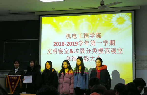 近日,机电工程学院在阶西2-1举行文明寝室和垃圾分类模范寝室总结表彰大会。机电工程学院党总支副书记范洪梅、学工办老师、获奖寝室学生及学生代表参加表彰大会。