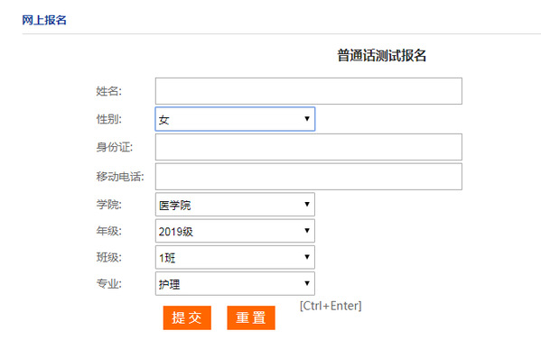 本次报名采用网上报名的方式,学生自行登录继续教育学院网站进行普通话测试报名,按要求填写个人正确信息后提交即可。