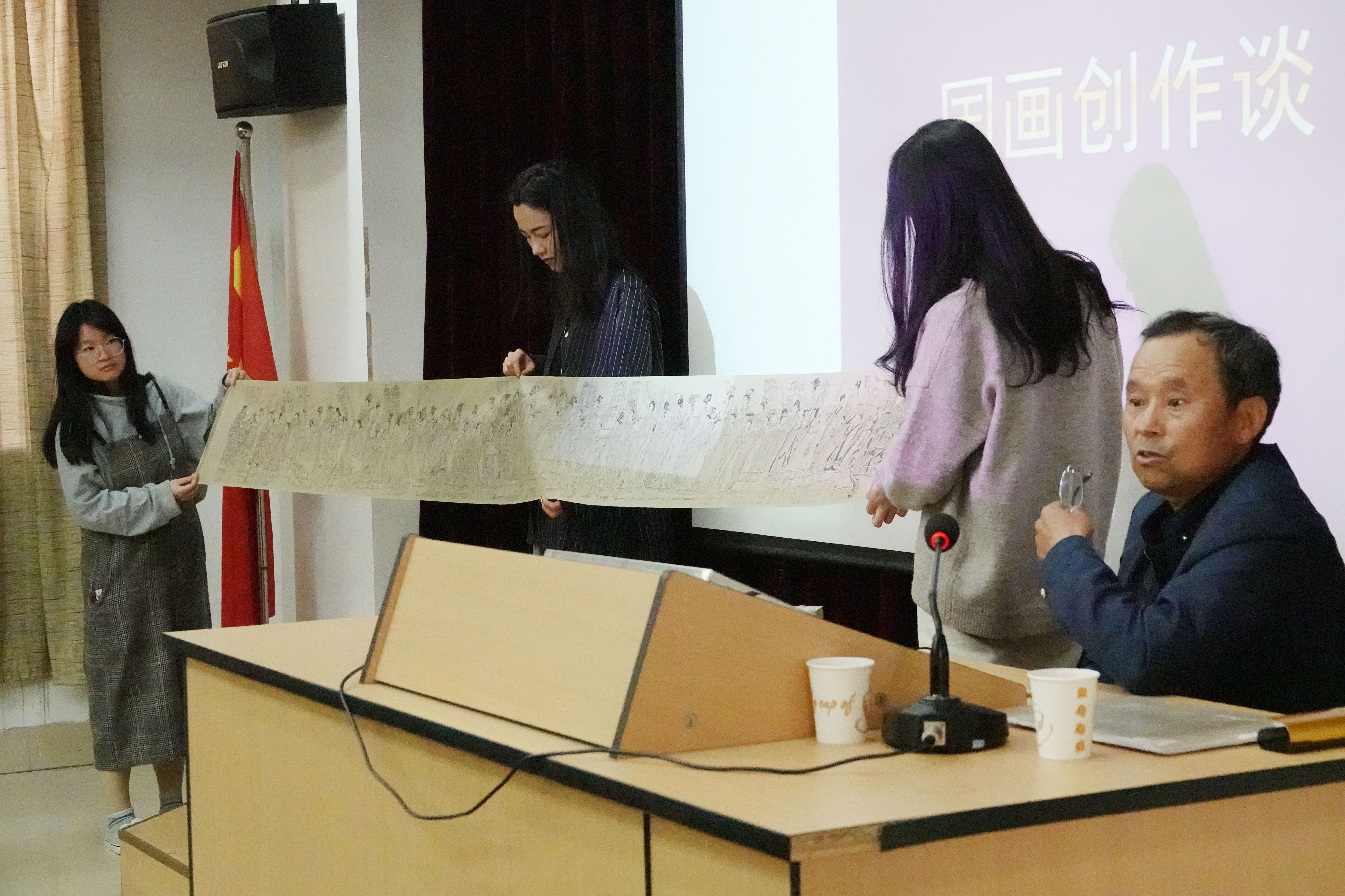 2019年4月10日下午,中国美术家协会会员,原衢州市美协主席,衢州市文联副主席王集法先生应邀来我校做《国画创作谈》的讲座。王集法先生谦卑含容,多年潜心研究美术创作,有着丰富的美术创作实践经验,其作品多次入选全国和省级的展览。