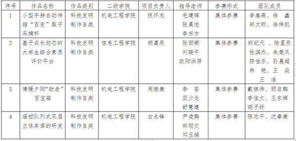 根据《关于组织开展浙江省第十六届“挑战杯”大学生课外学术科技作品竞赛的通知》要求,校团委组织开展了浙江省第十六届“挑战杯”大学生课外学术科技作品竞赛申报工作。经各二级学院组织申报,校团委、教务处、科研项目处审核,现将拟推荐项目进行公示,公示期5天。![]()