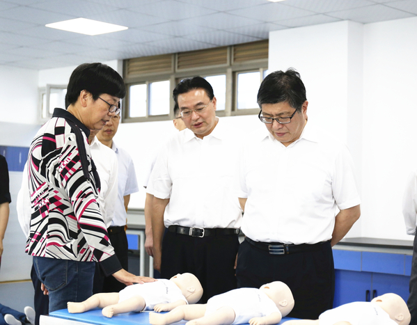 一行人参观了阅驿站、医学院实训中心老年护理实训基地、母婴护理实训基地、图书馆等,对我校实训基地建设给予高度评价。