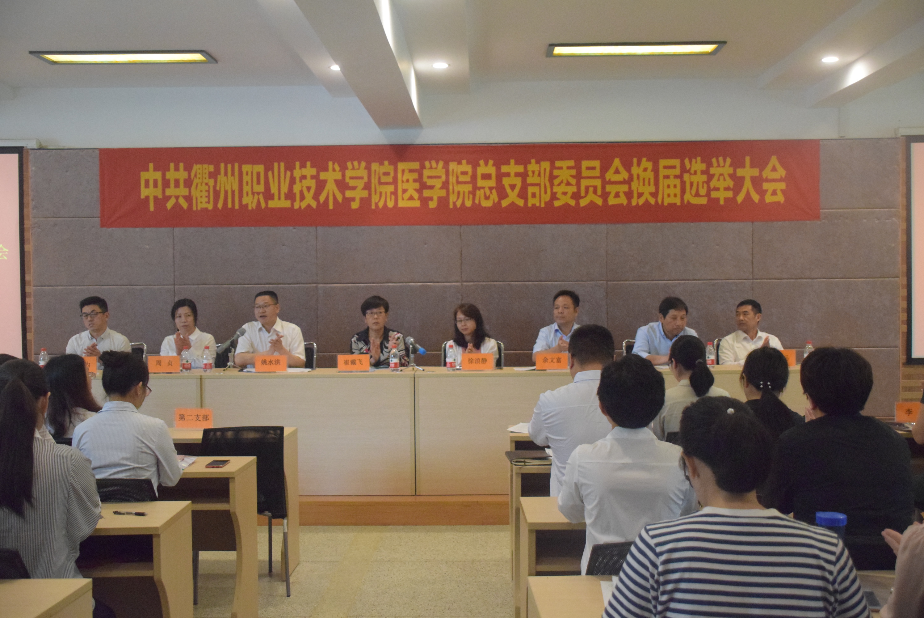 2019年6月26日上午9:00,医学院在实训室多功能厅召开党总支换届选举党员大会。 校党委书记崔戴飞,组织部部长徐浪静,纪检监察室主任张锦平,组织部副部长李威,以及医学院全体党员教师出席了会议。会议由医学院党总支委员,医学院院长姚水洪主持。