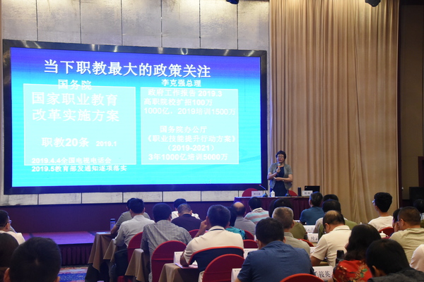 16日上午,国家教育行政学院职业教育研究中心主任、学术委员会主任邢晖教授作了《职教新政策与职业院校“三变并举”》专题报告,重点解读了《国家职业教育改革实施方案》以及“职教20条”给职业教育带来的机遇与挑战,并从“三变并举”,即量变、序变、质变的角度,为职业教育高质量发展提出了意见建议。