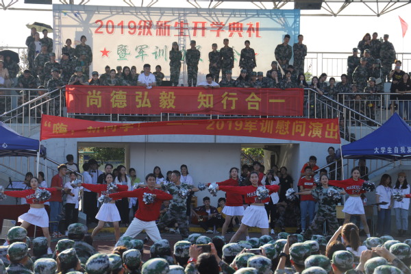 9月25日下午,由学生处主办、大学生自我发展中心承办的“嗨,新同学!”2019军训慰问演出在操场火热开演。