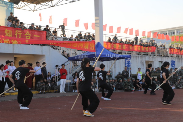 演出节目内容丰富,形式多样。开场舞健美操《活力青春》充满朝气与青春的活力,率先炒热了现场气氛;吉他弹唱《无名之辈》奋进直白的歌词宛如一场逐梦少年的热血宣誓,点燃少年们热血;力量和性感结合的舞蹈《尖叫声》以诙谐动感的方式引爆全场观众的激情;武术表演有板有眼、虎虎生威,赢得观众的阵阵掌声……参与小游戏的教官们一改往日严肃的面容,纷纷融入欢乐的游戏中,气氛嗨到最高潮。