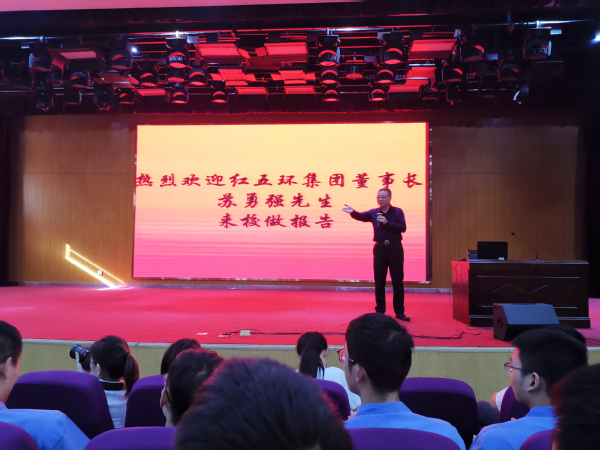 9月25日,机电工程学院在图书馆一号报告厅举办了题为“大学生的使命担当”的专题讲座,主讲人为红五环集团董事长苏勇强先生。红五环订单班学生及全体机电学生参加了讲座,讲座由机电学院党总支书记巫少龙主持。