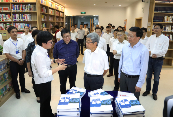 X考证中心,藏书近2万册,于今年九月初落成,以响应国家职业教育“1+X证书制度试点”。作为图书馆的重要内设机构,中心主要服务于学生的职业资格考试和职业素养提升。崔戴飞介绍了中心考证图书资源、考证信息、考证辅导等服务的开展情况。陈宝生频频点头,对学校紧跟国家教育改革步伐、接轨地方的特色办学理念给予充分肯定。