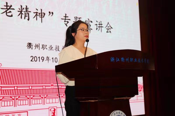 为深入开展“不忘初心 牢记使命”主题教育, 引导广大青年学生自觉向英雄学习, 激励青年学生学先进、守初心、担使命,10月18日下午1点30分,在我校一号报告厅内,近400名我校大学生现场聆听了“三老精神”宣讲团成员王冰雪、陈蓉蓉的“三老”事迹宣讲。会议由党委委员、宣传部部长孔庆红主持。