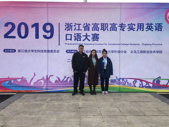2019年浙江省高职高专实用英语口语大赛于11月28-29日在义乌工商职业技术学院隆重举行。本次大赛共有来自47所高职高专院校的163名选手参加。竞赛分公共英语组和英语专业组两个组别。经过激烈角逐,文化旅游学院选派的孙婕同学和董克浩同学分别获得专业组二等奖和优胜奖的佳绩。他们的指导教师分别为应用英语专业的李静老师和贺美娜老师。