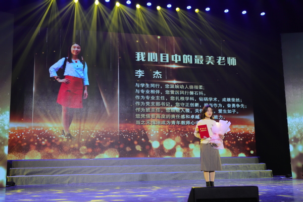 在晚会现场,学生对受表彰老师进行了最真情的告白,为他们献上证书,把最美的鲜花送给心中最美的园丁,最美的人生引路人。这批热爱教育事业、关爱学生、受学生尊敬和爱戴的先进典型,用我们身边优秀教师“刻苦钻研、敬业奉献、潜心育人”的先进事迹教育人、感化人,为进一步落实立德树人的根本任务,营造了“教书育人、尊师重教”的良好氛围。