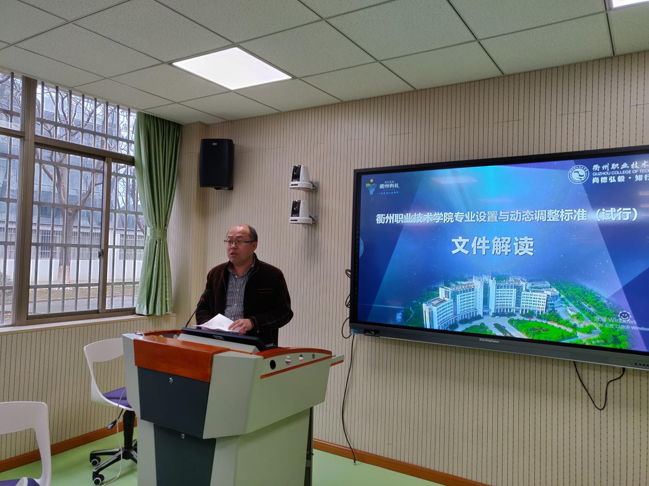 1月7日下午,我校召开《专业设置与动态调整标准》文件解读会。外事办、人事处、学生处、合作发展处、教务处、科研处、计财处、规划与督导处、设备与实训管理中心、继续教育学院等职能部门负责人、各二级学院教学负责人和专业负责人出席会议,会议由教务处长王建主持。