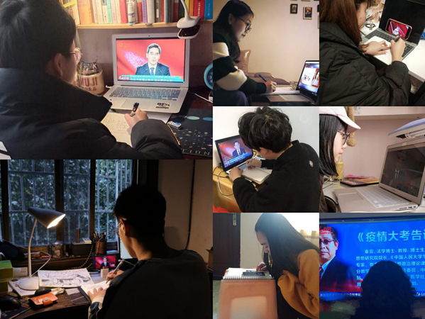 在举国上下万众一心、众志成城做好新冠肺炎疫情防控工作的特殊时刻,3月9日下午2点30分,由教育部社会科学司、人民网将联合举办“全国大学生同上一堂疫情防控思政大课”通过人民网教育频道、人民网人民智云客户端等同步线上直播开课。我校党委高度重视、精心部署,在思政课教学过程中积极组织开展线上学习讨论活动,全体师生通过网络媒体准时上课。