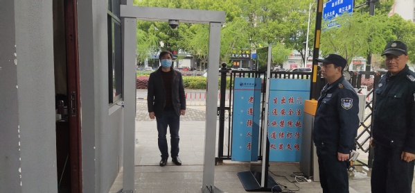 该测温设备为非接触式体温测量,可测量两米范围内通过的人员体温,如有发热人员通过则会进行警报,该设备的投入使用能极大提升学校在师生体温测量的安全性和工作效率。(后勤保卫处)