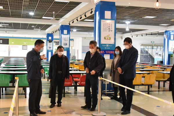 评估专家组测试了我校防疫监测通道和体温测量,对校园卫生环境、隔离点、教学楼、洗手池、食堂、学生宿舍、防疫物资储备室、医务室、图书馆等重点场所进行实地评估。
