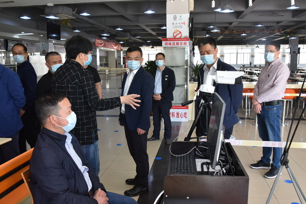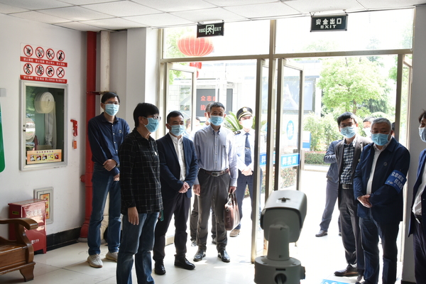一行人先后实地查看了我校红外测温通道、隔离点、学生公寓、食堂、防疫物资仓库、医务室等场所,详细了解学校防控措施、师生返校安排、防疫物资储备等情况。