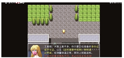 “学校太贴心了,居然还开发了返校小游戏,各种注意事项一目了然,为学校的别出心裁点赞!”医学院吕同学说,游戏设置了从校门下车开始一路“打怪”升级模式,同时将寝室休息、教室上课、食堂就餐等流程囊括到游戏环节中,一边打游戏一边就把学校报到流程搞清楚了。