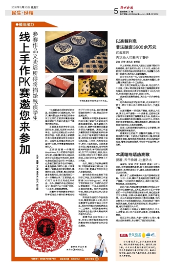 “这些都是社团同学们的作品,我们想把它们都捐出来。”昨天,江南网页版艺纸芳华手工社团的王丽芸向衢报传媒集团周到工作室记者展示了精美的剪纸作品。