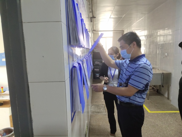 在学校食堂即将恢复堂食服务之际,为推进疫情期间食堂各项工作的顺利开展,5月27日下午,副校长傅元勋带队检查学校食堂食品卫生与安全管理工作。傅元勋一行认真查看了食堂操作间、库房、面点间、蒸饭间、洗碗间等重点操作区域,认真检查了从业人员健康管理、大宗物品采购、食品留样、餐具清洗消毒、操作区域消杀灭菌等管理制度与台账,并对食堂恢复堂食服务可能存在的问题及困难提出解决意见。