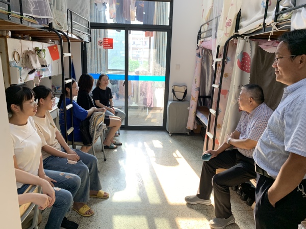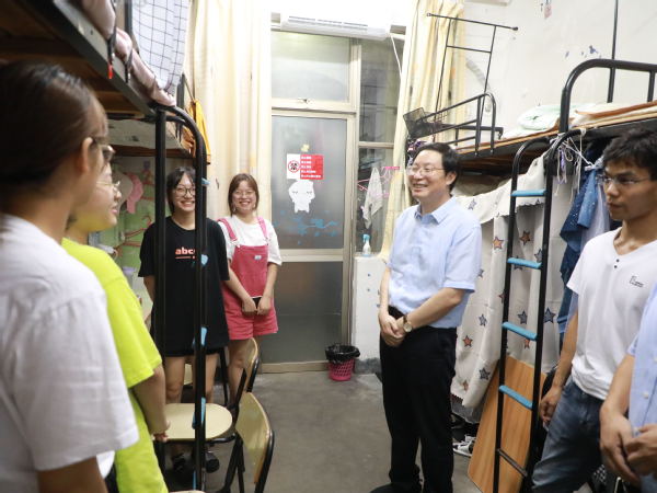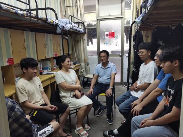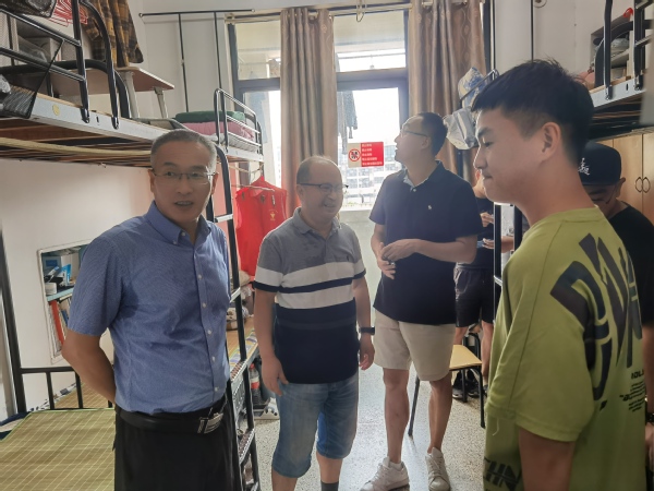 为更好地深化践行我校“三二二一”联系制度,关心了解学生新学期复学报到后的思想动态,新学期伊始,校党委书记徐须实,校长吕延文,党委副书记王东升,党委委员、副校长傅元勋、纪委书记章加春、副校长何百通、副校长巫少龙、组织部(人事处)部长(处长)徐浪静深入学生宿舍,走访慰问暑假返校学子。