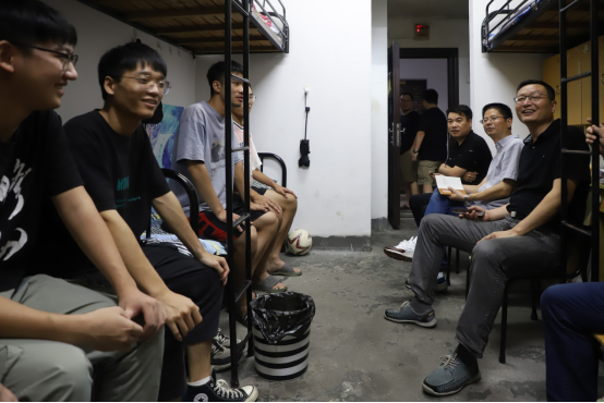 吕延文冒雨走访了所联系的信息工程学院19光伏1班2233寝室和18网络1班5123寝室。走进寝室,吕延文贴心地为同学们带去了新鲜的水果,并亲切地与寝室各位同学一一交流,询问学习、生活和未来规划等情况。他说,大学三年是集中学习专业知识、培养综合运用能力,强化信息加工水平的重要阶段。同学们要自信自强,明确生涯目标,努力编织好自我能力的篮子,发挥长板优势,发展团队协作,紧紧抓住当下最好的时代机遇,实现青春理想。