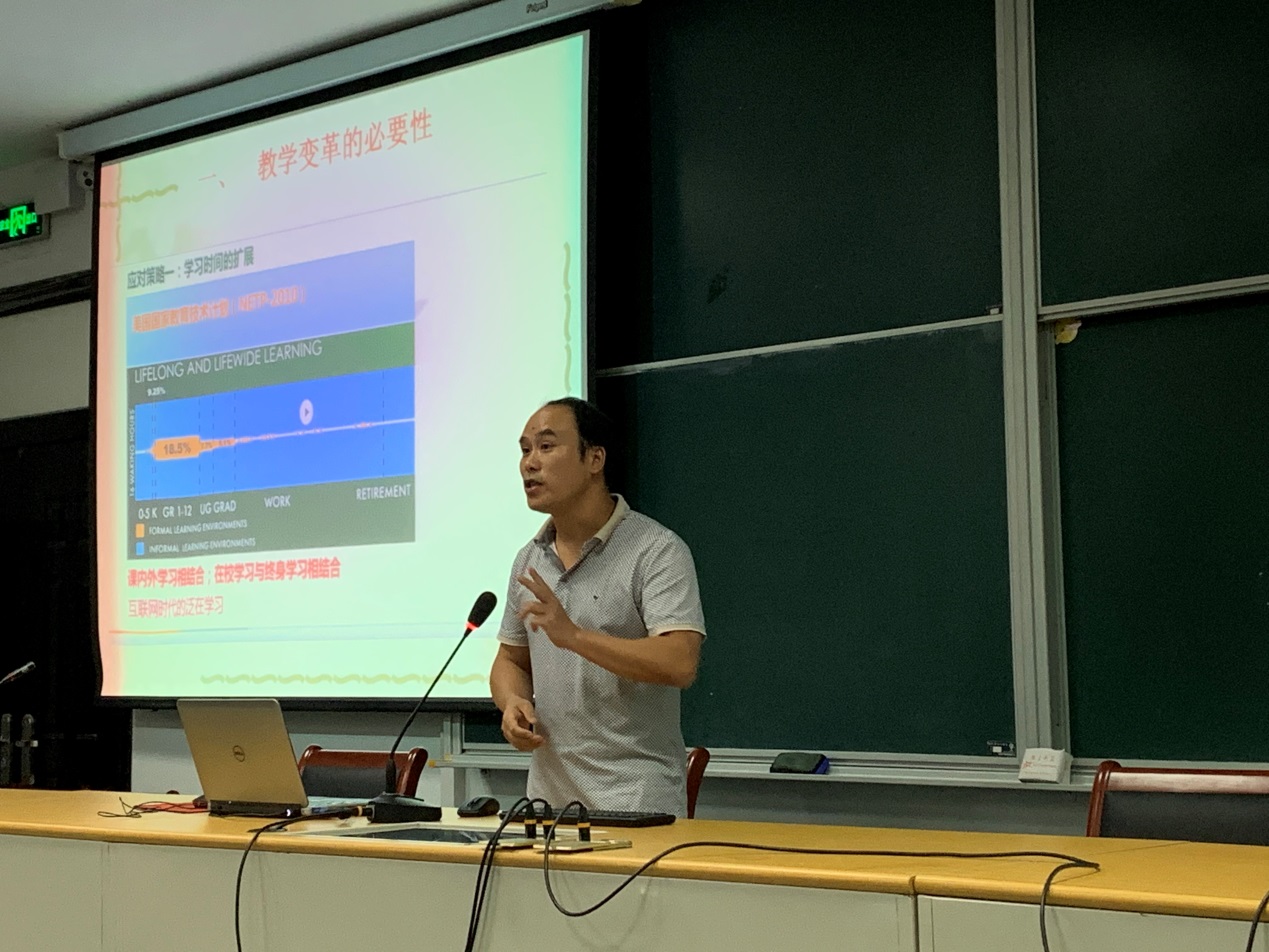 公共基础部朱付建老师围绕“教育信息化形势下的高职教师角色再造与思考”主题,从教育变革的必要性、职业教育课堂教学面临的困境和开展翻转课堂的意义三个方面总结了教师教育教学能力提升专题培训的收获。