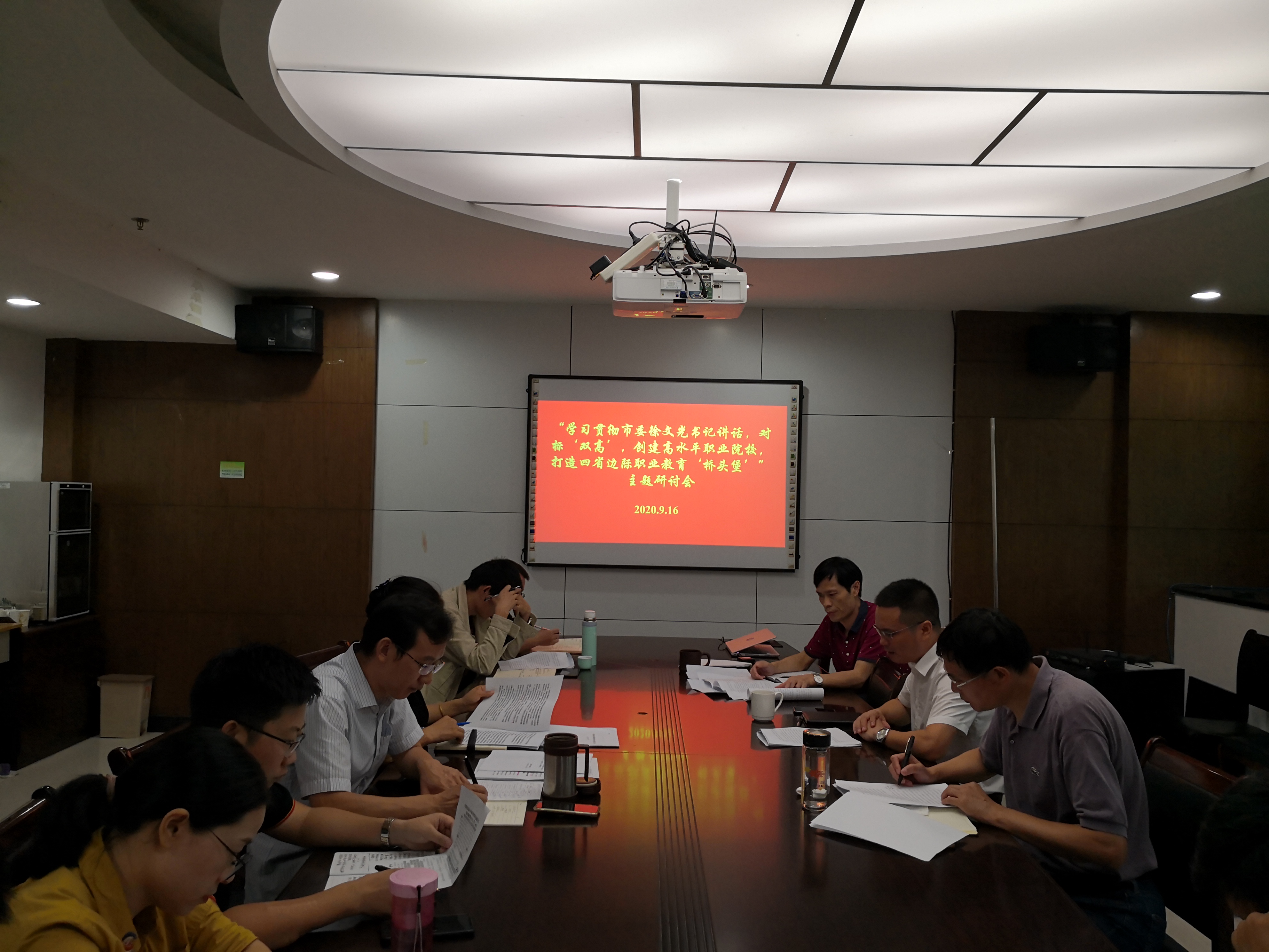 9月16日上午,机电工程学院在307会议室召开主题研讨会,学习贯彻市委徐文光书记讲话,对标“双高”,创建高水平职业院校,打造四省边际职业教育“桥头堡”开展主题研讨。校党委副书记王东升、副校长巫少龙到会指导并发表讲话,机电工程学院主要领导及各专业负责人参加研讨会,机电工程学院院长周明安主持会议。