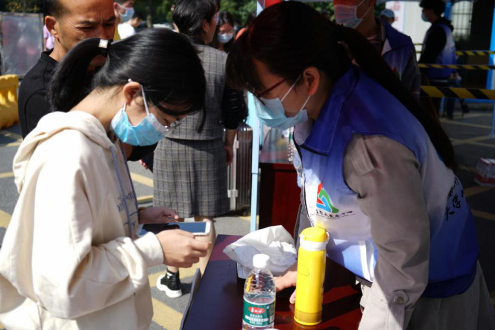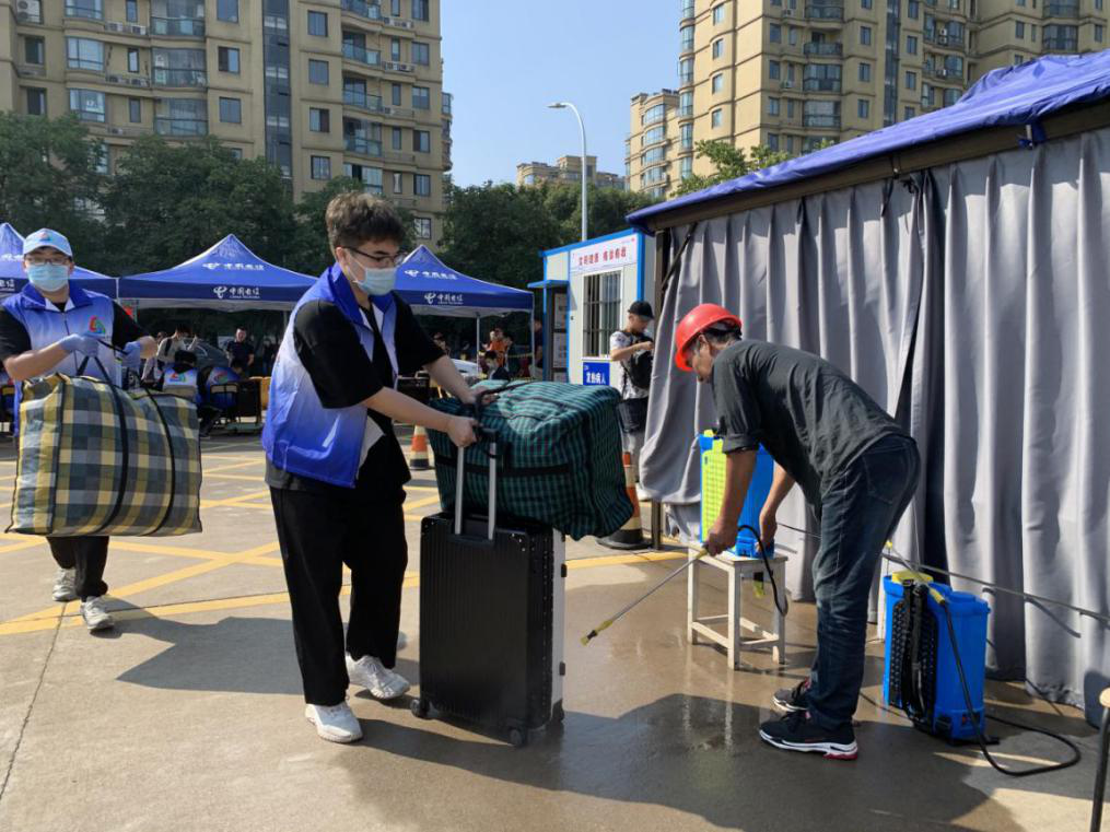 看到学校师生们的热情周到接待,让等待在校门口久久不愿离去的新生家长们得以宽心了些,“我们来自外地,疫情期间又不能进校园,刚开始很担心孩子一个人能不能顺利报道、整理宿舍。”20大数据班王春婷的爸爸说,“到校后发现这里的学生都很热情,我们一下车他们就拉着小推车忙前忙后过来帮忙,是他们消除了我们的担心和顾虑。”