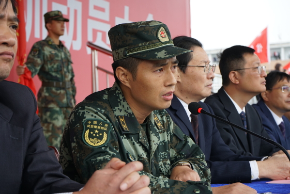 武警衢州支队副参谋长李左灿讲话。他说,一个民族的强弱兴衰与国民国防意识的强弱有着直接的关系,希望同学们认清军训的重大意义,珍惜军训宝贵机会,感悟团结紧张、严肃活泼的特殊意义,体会苦于乐的特殊涵义。同时要求全体承训教官要严以律己,为人师表,带队育人,严格按照既定的计划内容科学施教。