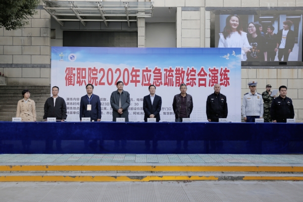 为强化校园安全防控措施,增强师生员工的安全防范意识,提高应对火灾、暴恐、医疗救护、汛情、电梯故障等各类突发事件的自防、自救能力,促进“平安校园”建设工作,我校于10月23日举行应急疏散综合演练。校领导徐须实、王东升、傅元勋、巫少龙、徐浪静出席演练现场。本次演练活动特别邀请了市应急管理局、市公安局警卫处、柯城消防大队、智慧新城派出所等领导进行了现场观摩。