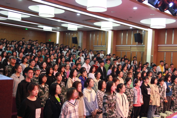 最后,课程在全体新生合唱的改编歌曲《青春有你》中落下帷幕,斯彬彬书记寄语新生:青春是一个人一生最宝贵的时间,犹如朝日、譬如初春,希望所有新生心中有阳光,脚下有力量,胸中有信念,无惧风雨勇往直前,全力以赴追逐梦想。