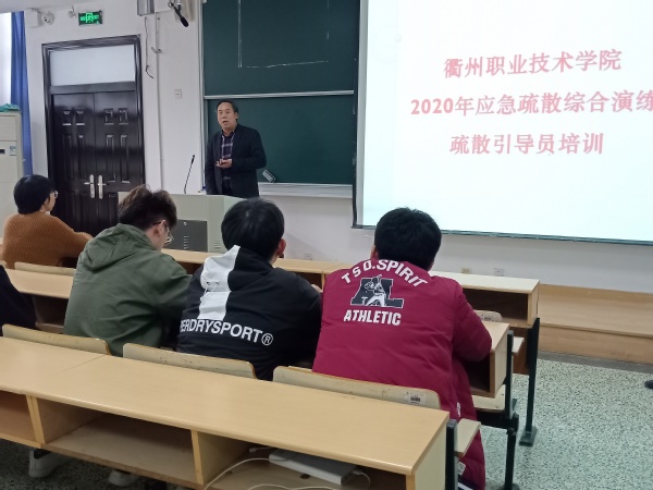 为切实做好2020年应急疏散综合演练,明确各幢宿舍楼疏散线路负责人、疏散引导员的岗位职责,10月23日中午,学生处组织开展了本次培训,由学生处、后勤保卫处老师开讲。